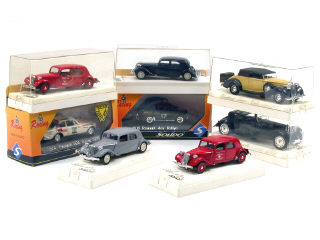 miniatures reproduisant les modèles : CITROËN, PACKARD, RENAULT, BUGATTI & PEUGEOT