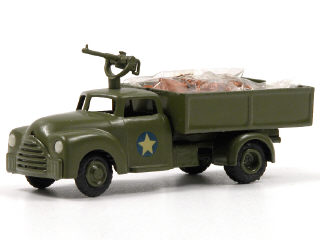 4 soldats sous sachet jamais ouvert présents - version avec mitrailleuse directionnelle sur le toit de la cabine, décalques représentant l'étoile américaine sur les portières & absence de marquages latéraux sur le capot-moteur