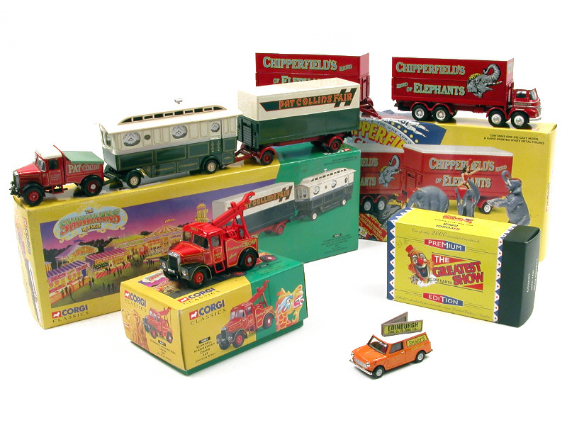 CORGI TOYS (GB) 16502 SCAMMELL HIGHWAYMAN avec remorque-fourgon & caravane ''PAT COLLINS FAIR'' vert & blanc cassé