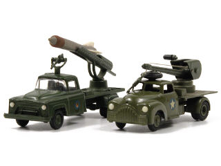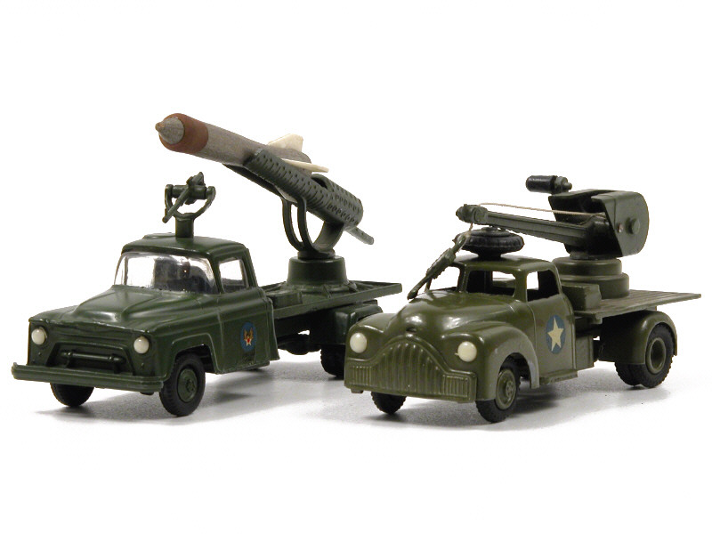 version avec élément directionnel sur le toit de la cabine & décalques 'ARMY AIR FORCE' sur les portières - 4 pneus affaissés & 2 non d'origine - le canon a été remplacé par le système lance-missile de la référence 455 (missile non d'origine), en état 'C'