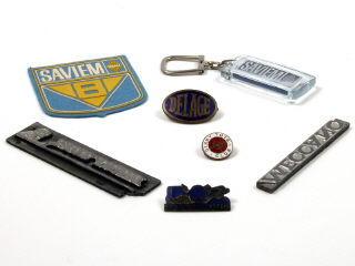 on y joint un porte-clefs & un badge 'SAVIEM' ainsi que 2 épinglettes 'FERGUSON SYSTEM' & 'DELAGE'