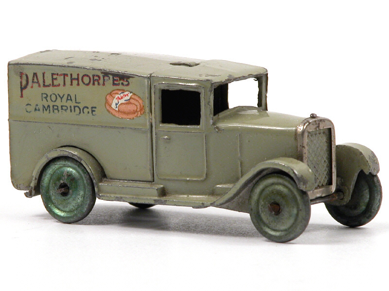 DINKY TOYS (GB) 28F Delivery van 'PALETHORPES ROYAL CAMBRIDGE' gris vert pâle, roues vert irisé