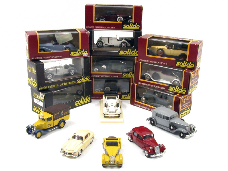 série 'AGE D'OR' - miniatures reproduisant les modèles : BUGATTI, CORD, MERCEDES, HISPANO-SUIZA, ROLLS ROYCE, RENAULT, CITROËN & DELAHAYE - 5 véhicules sans boîte