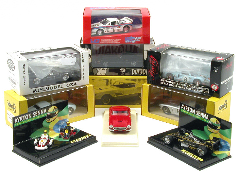 miniatures reproduisant les modèles : FERRARI, LOTUS, LANCIA, LOLA, JAGUAR & FORD - on y retrouve les marques : BANG, LANG, IDEA 3, VITESSE & LA MINI MINIERA