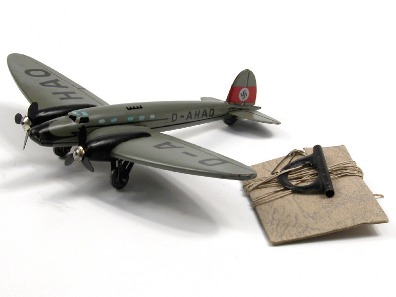 envergure 18,5 cm - immatriculation D-AHAO - avec crochet & ficelle de suspension - hélices changées - dérive restaurée conforme à l'origine - il est à noter que les dérives de ces avions sont fréquemment restaurées du fait de la présence des croix gammées qui ont souvent été effacées - SUPERBE !
