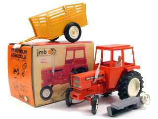 MONT BLANC (FRANCE) 323 141 RENAULT 651 Tracteur agricole téléguidé avec remorque fourragère orange & jaune