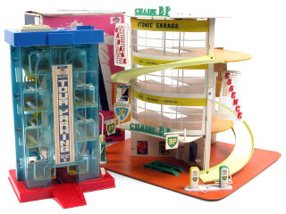 SOCIETE RHODANIENNE DE JEUX & JOUETS (FRANCE) Garage 'BP' à 3 étages orange, jaune d'or & crème