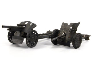 HAUSSER-ELASTOLIN (ALLEMAGNE) Ensemble de 2 canons en tôle peinte vert armée