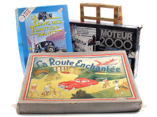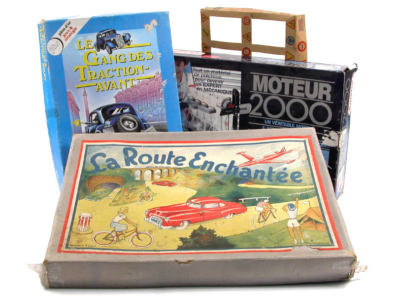 états de 'C' à 'D' - les boîtes sont de 'c' à 'd' - comprend : 'LE GANG DES TRACTION-AVANT', 'LA ROUTE ENCHANTEE', 'MOTEUR 2000' & 'SUR LA ROUTE - LE CODE PAR L'IMAGE' - on y retrouve notamment les marques : JOUSTRA, INTERNATIONAL TEAM FRANCE & EDITION TELE-CODE - avec manques