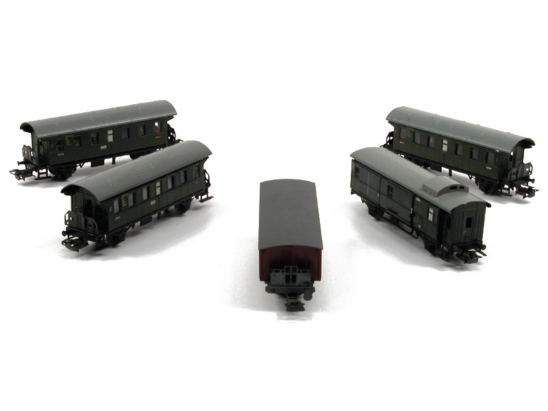 MÄRKLIN 'HO' (ALLEMAGNE) Ensemble de 4 voitures de voyageurs & un fourgon à bagages