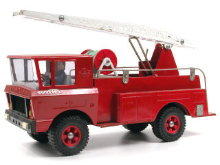 longueur 52 cm - avec sirène & conducteur - parties nickelées ternies - manque vraisemblablement 2 échelles latérales amovibles & un élément sur l'échelle principale (petites traces d'oxydation)