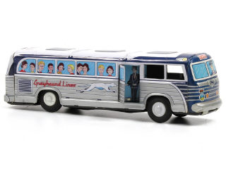 CRAGSTAN TOY (JAPON) Autocar 'GREYHOUND LINES' en tôle lithographiée gris métal & bleu