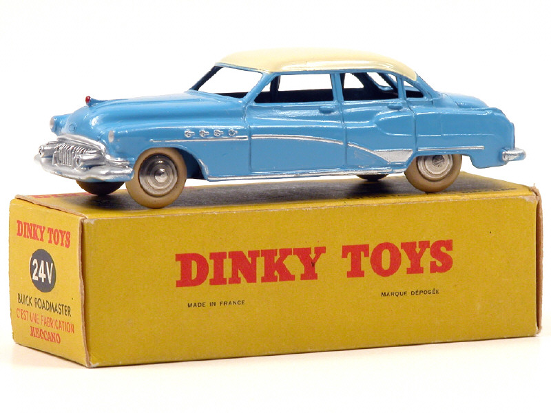 DINKY TOYS (FRANCE) 24V BUICK ROADMASTER (version avec intérieur de toit quadrillé & jantes chromées) bleu, toit crème
