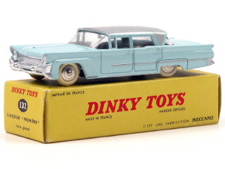 DINKY TOYS (FRANCE) 532 LINCOLN PREMIERE (version avec jantes convexes) bleu ciel, toit gris métal