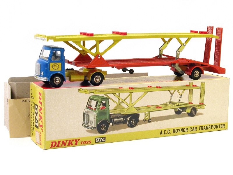 DINKY TOYS (GB) 974 A.E.C. Transporteur de voitures bleu métal, jaune & orange