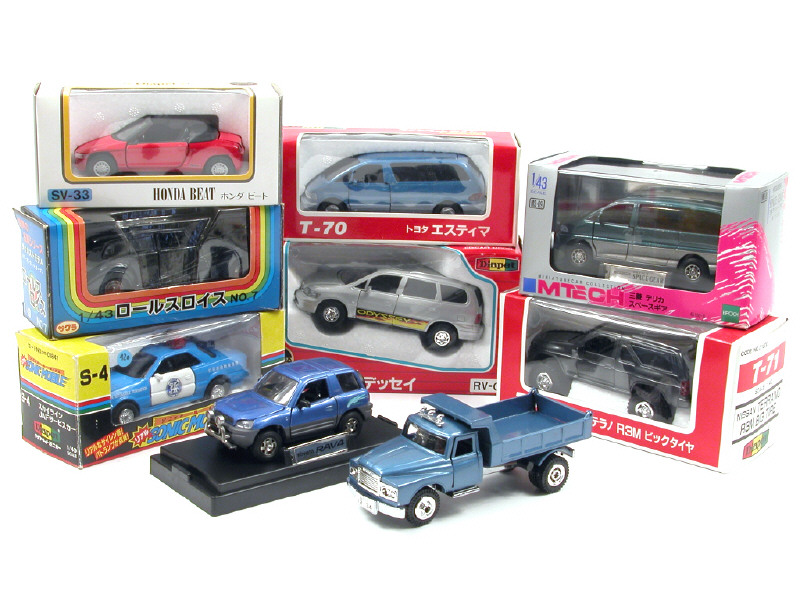 miniatures reproduisant les modèles : TOYOTA, HONDA, MITSUBISHI, NISSAN & ROLLS ROYCE - on y retrouve les marques : MTECH, KK SAKURA & YONEZAWA