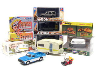 DIVERS Ensemble de 4 voitures, un utilitaire, une caravane & 2 boîtes de personnages