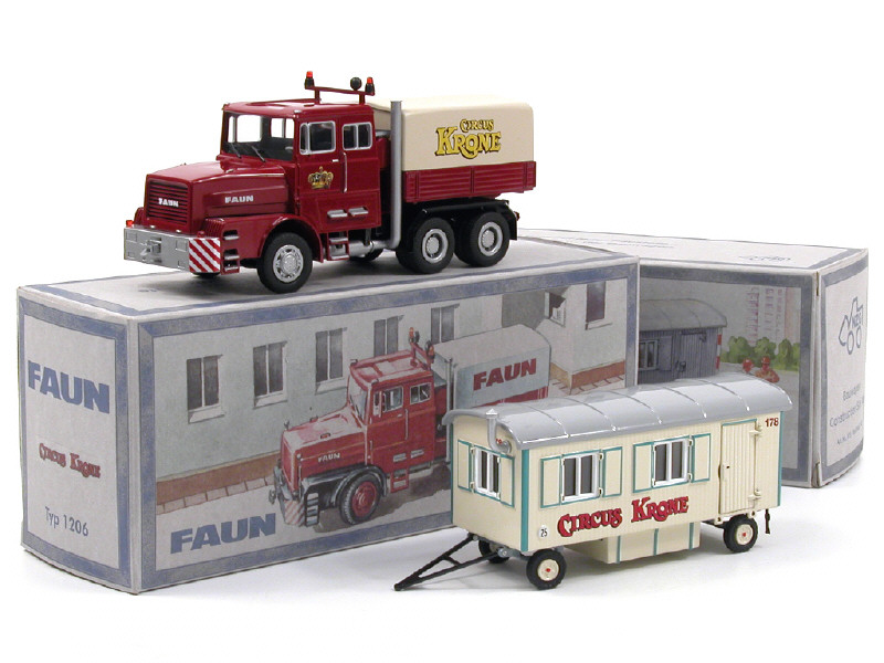 NZG (ALLEMAGNE) FAUN 1206 Benne bâchée avec roulotte 'CIRCUS KRONE' bordeaux & crème