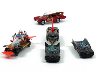 comprend : 3 véhicules de BATMAN, une MONKEEMOBILE & une CHITTY CHITTY BANG BANG (une pièce recollée) avec personnages