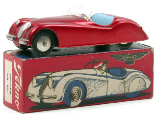 TEKNO (DANEMARK) 801 JAGUAR XK 120 1950 rouge métal, intérieur bleu ciel