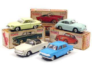 très légère déformation de la carrosserie - jantes légèrement fondues - traces de ruban adhésif sur la boîte - on y joint 2 boîtes vides de SIMCA OCEANE & SIMCA VERSAILLES mécanique en état 'b'