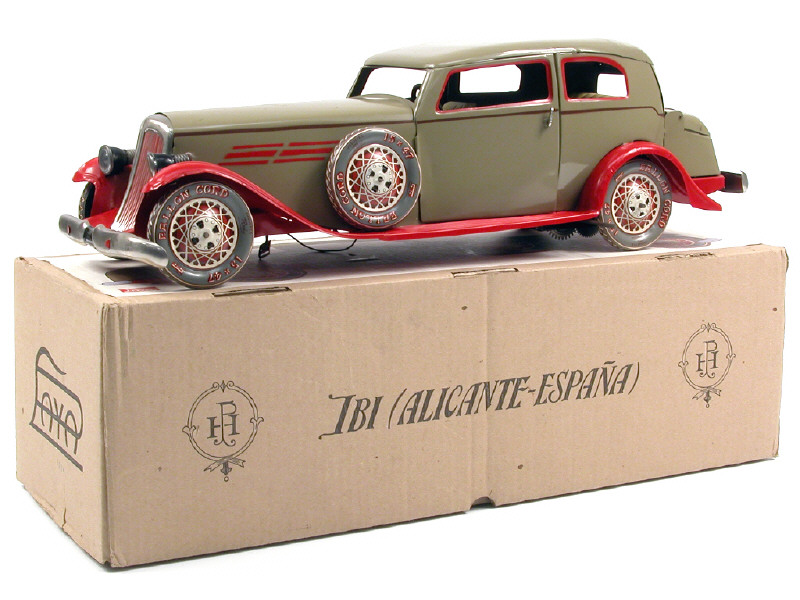 longueur 50 cm - moteur à clef (fonctionne) - avec direction par le volant & clef - portières & malle ouvrantes - sièges rabattables - phares électriques - réédition d'un modèle produit entre 1934 & 1950 - avec 2 certificats d'édition limitée numérotés 0726/5000 & un certificat d'authenticité - production de 1991