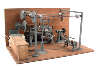 dimensions : 50 x 31 x 26 - coffret en bois artisanal - comprend : un tour, une scie, une meule, une perceuse & des outils - avec moteur électrique (non testé) - manque un outil sur l'établi - BEL ENSEMBLE TRES REALISTE !