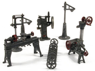 états de 'E' à 'F' - comprend : un tour, une scie, une pompe à eau, une perceuse & une perforatrice