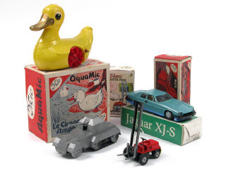 DIVERS Ensemble d'une voiture, une automitrailleuse, un chariot élévateur & un canard mécanique
