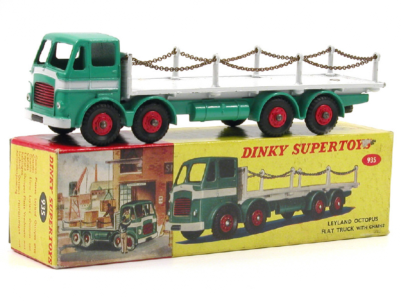 DINKY TOYS (GB) 935 LEYLAND OCTOPUS Plateau à chaînes vert & gris clair, jantes rouges