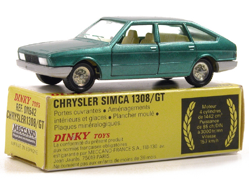 DINKY TOYS (FRANCE) 1542 SIMCA CHRYSLER 1308 GT (made in SPAIN) vert métal