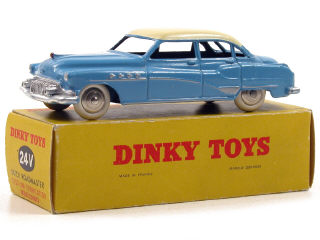 DINKY TOYS (FRANCE) 24V BUICK ROADMASTER (version avec intérieur de toit quadrillé & jantes chromées) bleu, toit crème