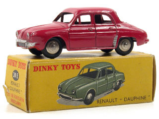 DINKY TOYS (FRANCE) 24E RENAULT DAUPHINE (version sans vitres & avec jantes convexes) framboise