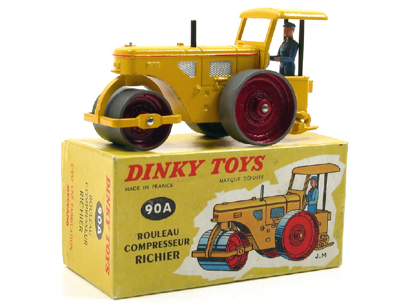 DINKY TOYS (FRANCE) 90A RICHIER Rouleau compresseur jaune & rouge