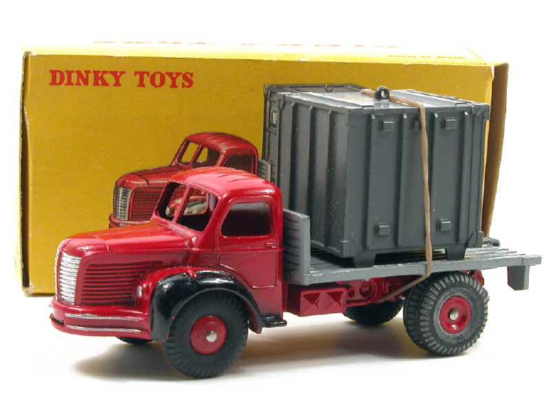 DINKY TOYS (FRANCE) 34B BERLIET Plateau avec container (version avec anneau moulé) rouge, plateau gris clair