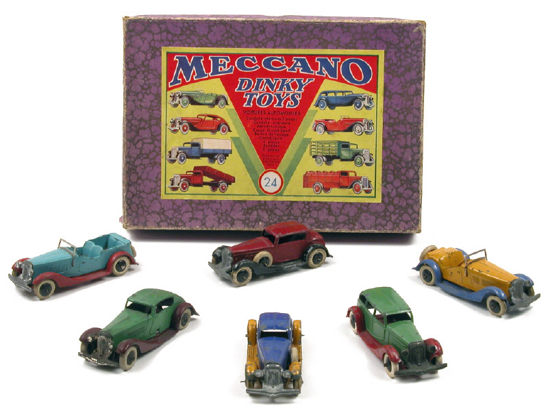 DINKY TOYS (FRANCE) 24 Coffret de 6 voitures 1940/1948 violet marbré