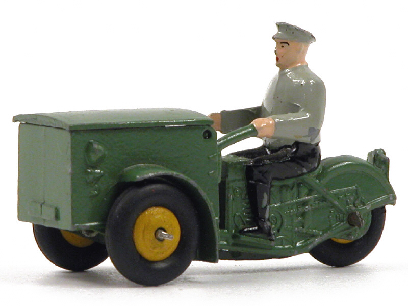 DINKY TOYS (FRANCE) 14A Triporteur (dernière version avec roues à pneus 'M') vert, jantes jaunes & pilote à chemise grise