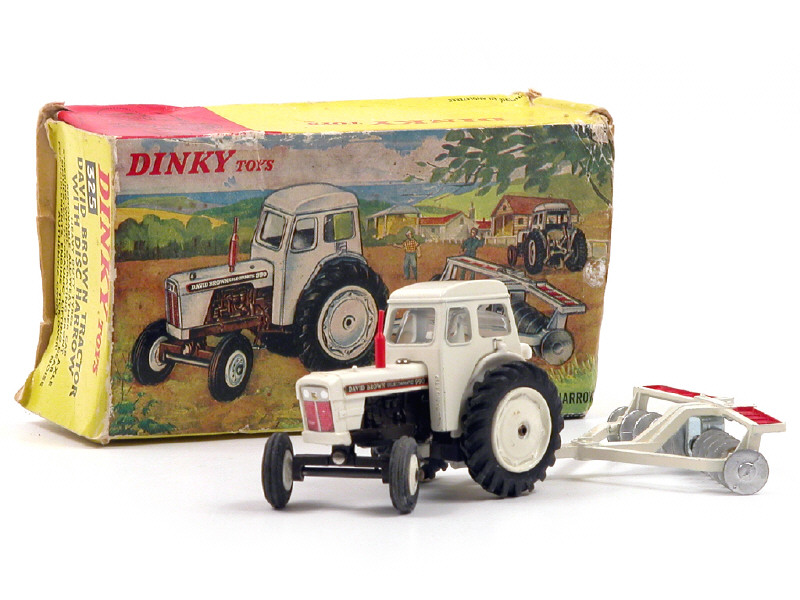 DINKY TOYS (GB) 325 DAVID BROWN Tracteur agricole avec DISC HARROW blanc & rouge