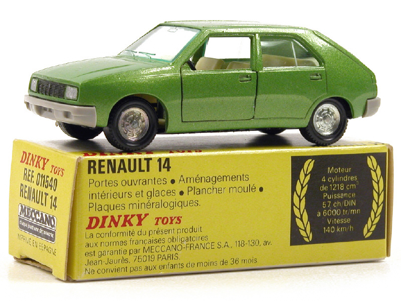 DINKY TOYS (FRANCE) 1540 RENAULT 14 (made in SPAIN) vert pomme métal