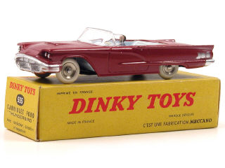 DINKY TOYS (FRANCE) 555 FORD THUNDERBIRD Cabriolet grenat, intérieur bleu ciel