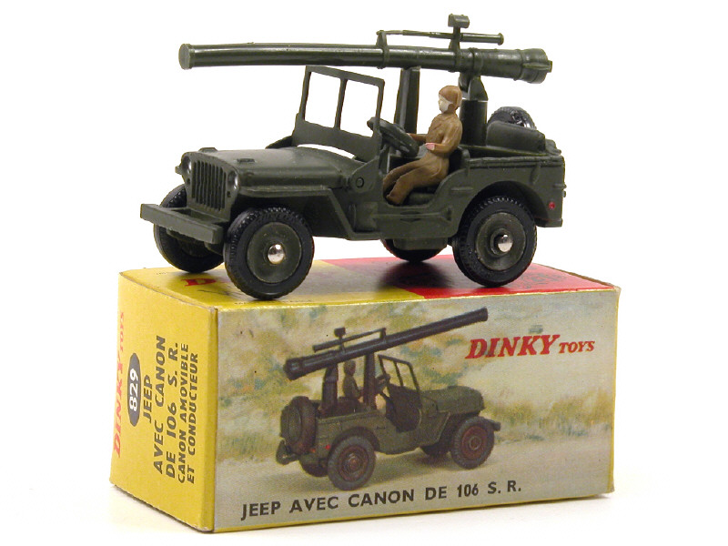DINKY TOYS (FRANCE) 829 JEEP WILLYS Porte-canon kaki