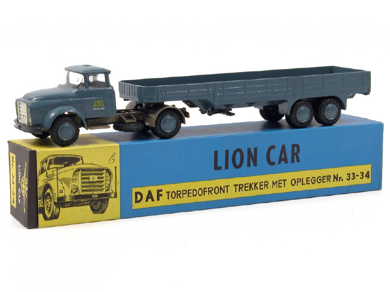 LION-CAR (PAYS-BAS) 33-34 DAF Torpédo semi-remorque plateau à ridelles basses 'BVB MAASLAND' bleu pétrole & mastic