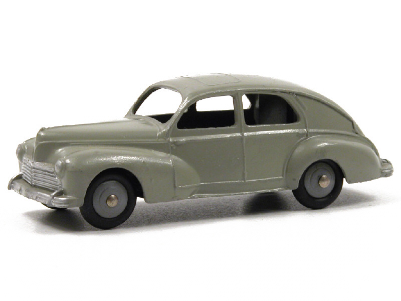 DINKY TOYS (FRANCE) 24R PEUGEOT 203 Petite lunette arrière (version avec intérieur de toit lisse & feu de stop) gris jaune, jantes gris souris