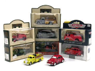 miniatures reproduisant notamment les modèles : FORD & DENNIS - on y joint une VOLKSWAGEN coccinelle de la marque VANGUARD