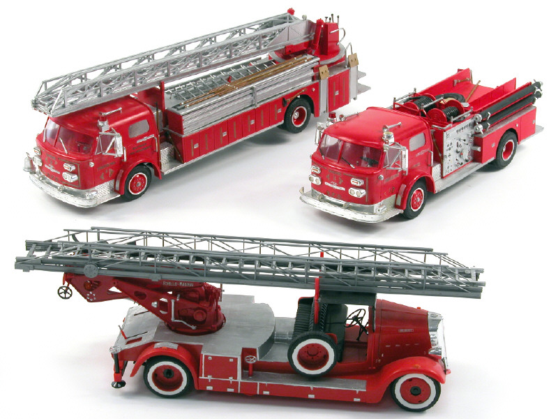 longueurs de 35 à 40 cm - miniatures reproduisant les marques : AMERICAN LAFRANCE & DELAHAYE - avec manques & parties à recoller