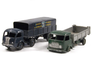 DINKY TOYS (FRANCE) 32AB PANHARD Semi-remorque 'S.N.C.F' (version avec intérieur de toit quadrillé) bleu foncé (fond de l'écusson quadrillé)