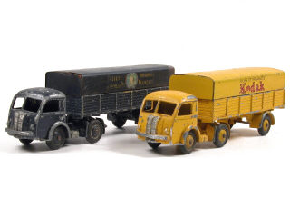 DINKY TOYS (FRANCE) 32AB PANHARD Semi-remorque 'S.N.C.F' (version avec intérieur de toit lisse) bleu foncé (publicité avec locomotive sur carte de France)