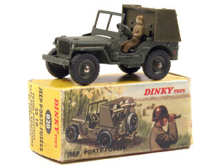 DINKY TOYS (FRANCE) 828 JEEP WILLYS Porte-fusées SS 10 kaki