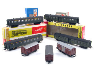 DIVERS (Ecartement HO) Ensemble de 4 voitures de voyageurs & 3 wagons