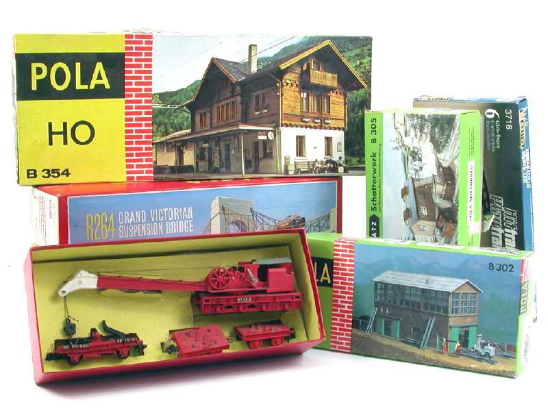 avec cales de boîte - manque un stabilisateur - on y joint 3 boîtes de maquettes ferroviaires de la marque POLA (semblent complètes) & 2 boîtes de rails de la marque FALLER